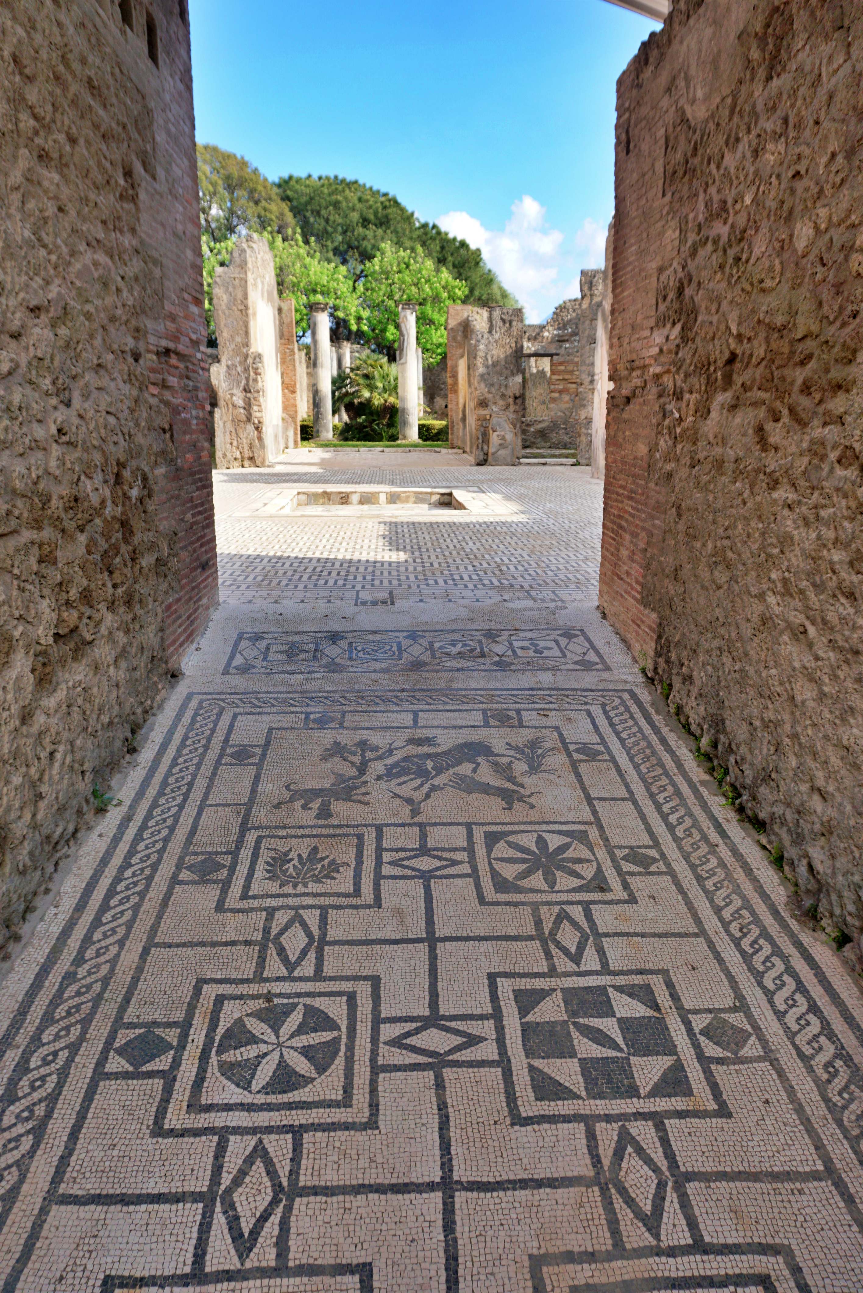 Помпей.Помпей е един от най-запазените антични градове и причината за това е надвесения над него вулкан Везувий.Той изригва някога преди много векове и поглъща града и го засипва с пепел.Откривайки го през 1748 година археолозите намират постройките много добре запазени, включително и самите жители на града, които са имали нещастието да бъдат там когато вулкана изригва.Пласт по пласт археолозите разкриват Помпей за да можем ние сега да се разхождаме по улиците му, да надничаме в стаите, да се снимаме до статуите.